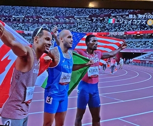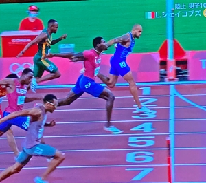 男子100m決勝 男子100mと言えば、ジャマイカのウサイン・ボルトのイメージが強い。 ボルトが引退した後「アメリカが来るのかな?」と思っていたが、イタリアのジェイコブスが優勝した。 ヨーロッパの選手が100mを制したことが、特筆されるのではないだろうか? 今後100mは、勢力図が変わっていくのかもしれない。