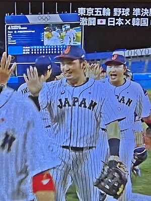 日本の野球が決勝へ 野球 準決勝、日本対韓国の試合は、両チームのプライドがぶつかり合い、素晴らしいゲームとなった。 7回を終わった時点で、2-2。 8回裏、山田が満塁で2ベースヒットを打ち、勝利を決定づけた。 これで日本が決勝へ進んだ。 アメリカと韓国が戦い、勝ったチームが決勝で日本と対戦する。 日本はチームワークが素晴らしく、選手たちも、それぞれ並外れている。 是非勝ってもらいたい。