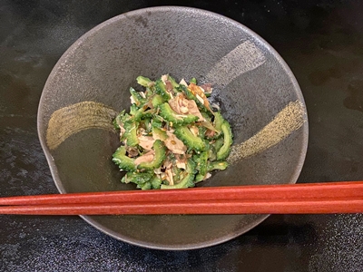 頂いたゴーヤで 今まで、自ら進んでゴーヤの料理を注文したことはなかった。 先日頂いたゴーヤを早速家内が調理した。 苦味を取るのが大変だったようだが、出てきた料理はすごく美味しかった。 僕のゴーヤに対する先入観は、覆された。