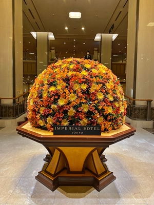 11月初日、帝国ホテルのエントランスのアレンジは菊とアリストロメリアだった。