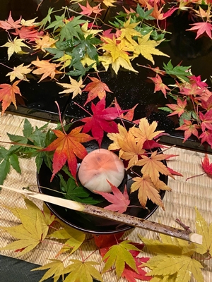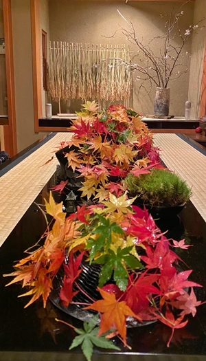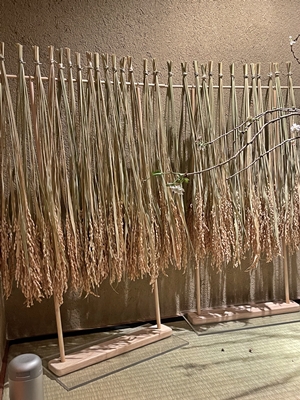 はざ掛け米 昔は、はざに刈り取った稲を掛けている光景をよく見たものだ。 こうするとお米に甘みが下がって来るとのこと。 美味しい秋の恵みを室内で、思い切り味わった。 どうやら紅葉取りのエキスパートがいるらしい。
