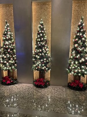 ホテルのディスプレイは既にクリスマスのデコレーション。