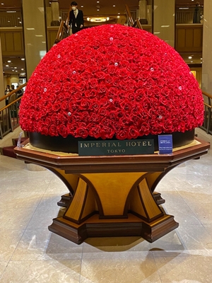 帝国ホテルのエントランスのディスプレイは、赤の薔薇一色!