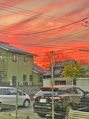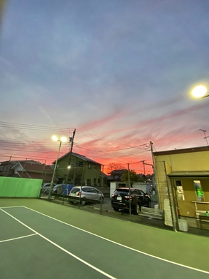 テニスコートから見えた夕焼けは、信じられないくらい素晴らしい光景であった。