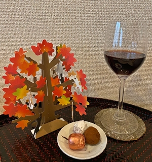 家にも可愛いモミジがあり、ワインとチョコレートを添えてみた。
