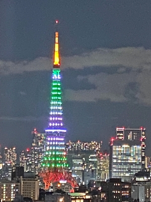 東京タワーがライトアップされ、美しい姿を見せてくれています。