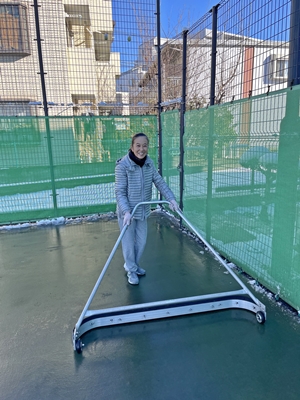 まだ路地には、掻いた雪が凍ったままになっている箇所がある。