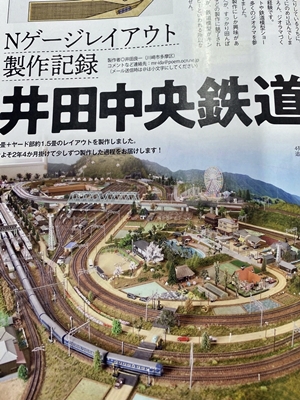 鉄道模型ジオラマが雑誌に… テニスコートのオーナーの井田さんは実に多趣味な方だ。 井田さんの趣味の1つである鉄道模型ジオラマが専門雑誌に特集された。 彼の本音としては、あちこちの展示会場等で披露したいとのことだが、とても繊細に作られていて、持ち運びが難しいそうだ。 また完成するまでに2年と4ヶ月も掛かった経緯もあり… 僕も見せてもらったが「本物だよね?」と思うほど精密に出来ている。 これが専門雑誌に特集されたという事は、井田さんにとっても喜ばしいことだと思う。