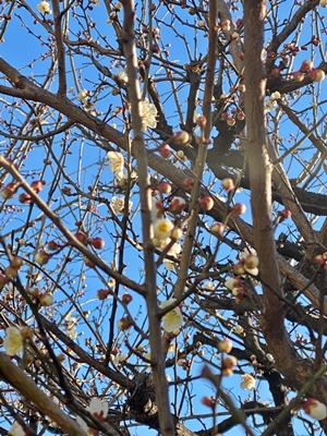 寒い日が続いているが、1,2週間前から梅の木に蕾が付いていた。