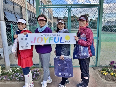 ダブルス大会で吉田さんが優勝 教え子である吉田さんが女子ダブルス大会で優勝したと写メを送って下さった。 左から2番目の方が吉田さん。 一生懸命テニスをされていて、頑張った成果が出たのだろう。 優勝って出来ないんだよね。 心からおめでとうございます。