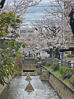 お花見に 家から歩いてわずかなところにある呑川の両岸の桜がほぼ満開。 沢山の方が、花見をしながら、ウォーキングやランニングを楽しんでいた。 桜は本当に美しい。 珈琲店を見つけて、コーヒーブレイク。 楽しいひと時を過ごした。