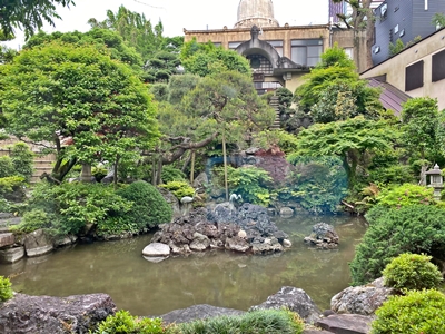 大松寺の庭園を鑑賞 三田にある大松寺の庭を観賞させて頂いた。 住職の酒井さんの説明と共にじっくりと。 ここ大松寺は、東京大震災にも東京の大空襲にも災害を免れたそうだ。 大都会の真ん中にこんな庭園が存在することが、不思議な感じがする。