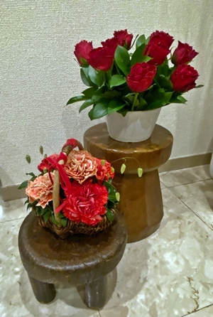 久しぶりに、息子と娘が花を携えて帰ってきた。
