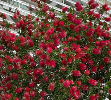 真っ赤なブラシのように見えるからか、別名 ブラシノキという名前がついているとのこと。