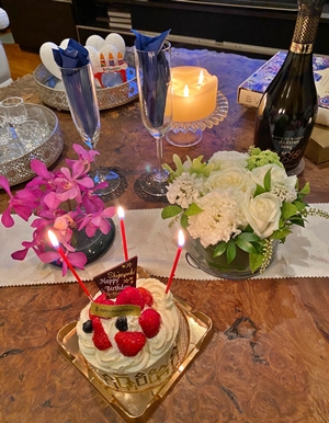 誕生日 今日は僕の誕生日だ。 スクールはお休みなのだが、わざわざケーキを買って、テニスコートで祝って頂いた。 夜には家で、家族が祝ってくれた。 また、沢山のお祝いメールをいただき、感謝しかない。 益々頑張らなければと思った。