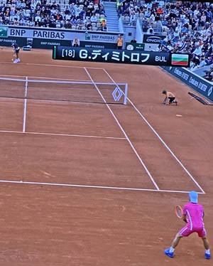前々週のマドリッドのATP1000の試合では、デミトロフがシュワルツマンに6-0.6-3のストレート勝ちしていたので「シュワルツマンがデミトロフに対してどう戦うのか?」と楽しみにしていた。