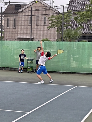 今にも雨が降り出しそうな夕方、全員ではないがトーナメントJr.の子供達が集まり、練習。