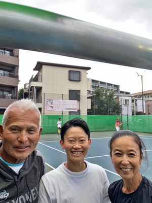 カメラマンは女性 近々、ホームページの画像を変えようと思っています。 ただテニスをプレイしている写真を撮るのは、凄く難しい。 やはりテニスを分かっている方でないと、動いているプレーヤーの素敵な写真は撮れないと思う。 下の画像の真ん中にいる女性が、プロカメラマンの森次さんです。 私がプレーしている写真を撮ってくださいます。 元々サッカーをなさっていたそうで、動く被写体を理解されていると思う。 当日が楽しみです。