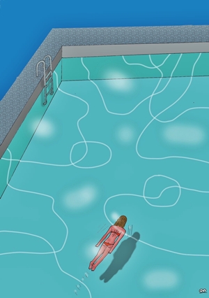 大きなプールで、女性が優雅に1人で泳いでいる。