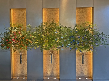グランドハイアットのロビーに、沢山の千羽鶴を枝に飾った素敵なディスプレイが施されていました。