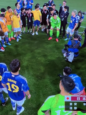日本 ドイツに逆転勝利 日本のワールドカップ初戦、ワールドカップのタイトルを何度も取っている強豪ドイツに対し2-1の逆転勝利を収めた。 前半はドイツペースで日本はチャンスがなく「このまま負けてしまうのでは?」と思ってしまった。 後半からは、システムを変えて臨みドイツを守備に追いやって、日本の勝利に導いた。 日本らしい、素晴らしい試合であった。 本当に嬉しかった。 次も頑張って!
