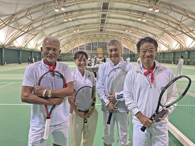 日本テニス協会主催 悠遊会 神宮テニス倶楽部で、今年2度目の悠遊会が開催された。 企業で活躍なさっているトップの方と元テニストッププレーヤーとの交流の場でもある。 紅白に別れて、チーム戦を行うのだが、今回は赤チームの勝利。 僕は2勝2敗だったが、赤チームに少しだけ貢献したかも?? 楽しい試合の後は、懇親会もあり、ざっくばらんな話も聞けた。 今回も楽しい会となった。