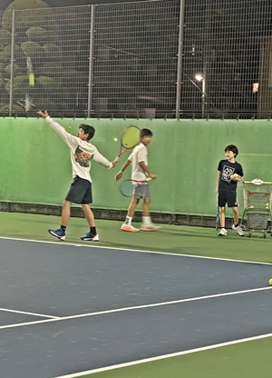 子供たちは元気だね 今日はとても暖かかった。 15°前後はあったのでは? 昨日は雪で寒く、今日は信じられないほど暖かい? 春がそこまでやって来ているのだろう?! でも、夕方からはとても寒くなり、ストーブをつけた。 そんな中でトーナメントクラスの子供たちは、凄い。 ショートパンツでテニスをしている!