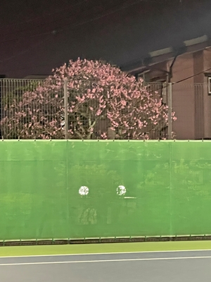 今日は暖かかった 今日、日中は20°前後まで気温が上がったのでは? 僕はショートパンツでテニスをした。 今年になって、初めてのショートパンツでのテニスであった。 ナイター照明をつけると、隣の家の満開の梅の木が見えた。 もう春!