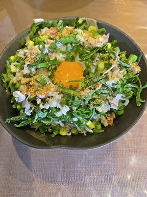 ネギ、シソ、ミョウガ、ゴマにタマゴ。