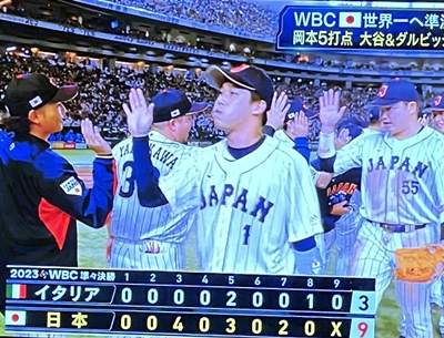 WBC 日本が勝ちベスト4進出 大谷が、ダルビッシュが、日本代表チームが、世界TOPのプレーを披露してくれた。 イタリアチームも素晴らしく接戦であったが、最終的には日本の力を存分に発揮して9-3で勝利した。 フロリダに行っても、世界No.1を目指して頑張って貰いたい!