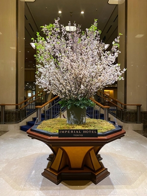 帝国ホテルの入り口のディスプレイは、啓翁桜。