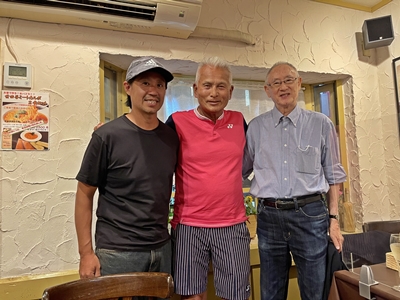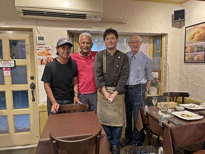 五年振りに友人と コロナ禍で会えなかった先輩 家合さんと連絡が取れ、桜新町のイタリアン カレンで赤土を含めた3人で、久しぶりに食事をした。 カレンは最近見つけた素敵なイタリアンのお店で、我が家のお気に入りだ。 この店なら家合さんも喜んでくれるのでは?と思い、お誘いした。 大正解! 家合さんも赤土も大喜びだった。 昔の話を次々と思い出して、フレンチオープンでの出会い、ウィンブルドンでの話等で盛り上がった。 食事をした後、シェフを含めて4人で記念撮影。 楽しい食事会であった。
