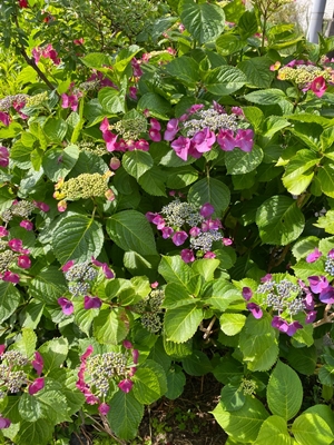 遊歩道にガクアジサイが咲いているのを見つけた。