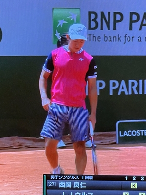 西岡 一回戦突破 西岡がアメリカのウルフと対戦。 2セットダウンから大逆転、1-6. 3-6. 6-4. 6-3. 6-3で勝利した。 確かにパワーがあるウルフだが、だんだんとミスが多くなり、第3セットからウルフのミスに乗じて、西岡がペースを掴んだようだ。 ただ西岡も気持ちの浮き沈みが激しく、全体的には淡白なゲーム展開であった。 次の試合に期待したい。