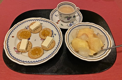 先輩から桃と梅ジャムを貰い、早速頂きました。