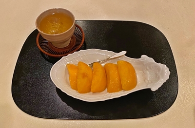 旬の桃にもいろいろな種類があるが、今夜は黄金桃。