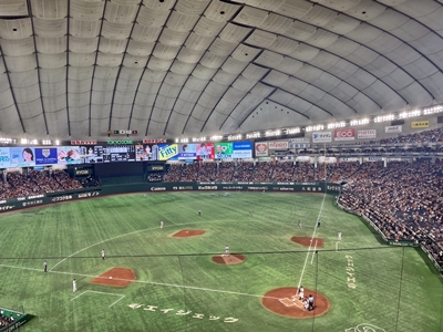 東京ドームで行われている、阪神対ジャイアンツ。