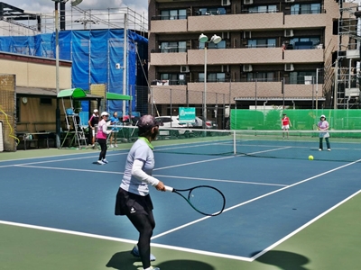 この暑さの中でも、生徒さんは思い切りテニスを楽しんでいます。
