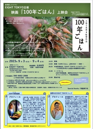 友人の上映会とイベント 二子玉川駅に出来たEIGHT TOKYOで、友人の大林千茱萸さんが作られた映画「100年ごはん」を鑑賞して、食事を頂いた。 これから自分自身も食という事に対して、考えなきゃいけないと思わせてくれる作品であった。 本当の意味での、身体に優しく美味しい食事とは?を提案した食事を頂いた。 色々な方とお話も出来て、素晴らしいイベントであった。