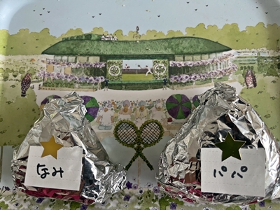 おむすび ウィンブルドンで以前買ったプレートに、ワイフが娘と僕におにぎりを作ってくれていました。 家にボーッとしているとすぐにお腹が減ります。 だからかな…? ウィンブルドンのプレート、なかなか素敵だね。