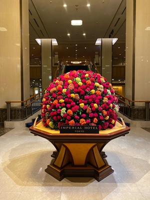 このシーズンになると、帝国ホテルのメインロビーには、ケイトウがディスプレイされる。