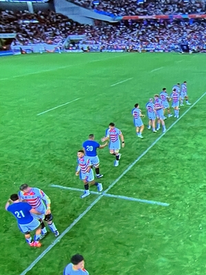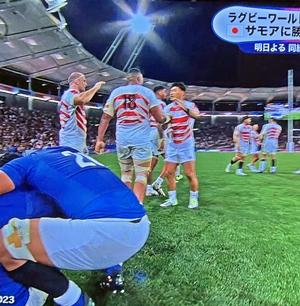 ラグビーW杯 日本勝利! 日本対サモア戦は、グループを勝ち上がる上でも、特に大切な試合。 苦戦が予想されたが、日本は前半から好スタートを切り相手を突き放したが、後半はサモアが頑張り最後までヤキモキした。 結果は、日本28対サモア22で勝利し、ホッとした。 次のアルゼンチン戦で勝利するか?で、リーグを突破できるかどうかが決まる。