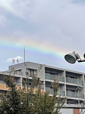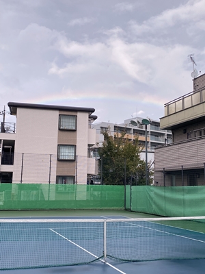 雨のあとに… 雨の後に虹が出たら、晴れて来る。 先日雨で、テニスが出来ないと諦めていたら、急に雨が止み、虹が出てきた。 その後、眩しいくらいの太陽が出て、虹も消えた。 束の間の虹だったが、素晴らしかった!