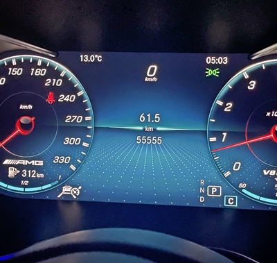 車を走らせていたら、走行距離 55555キロの表示が出た。