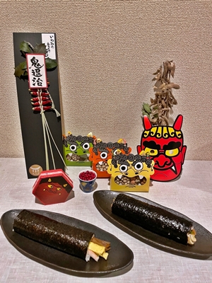一年間の厄を払い、福を招くように、今年の恵方である東北東を向いて恵方巻を食べました。