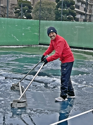 今日は大変! 雪が降った後は、雪かきが大変。 笑顔で一生懸命雪かきをする姿は、素敵だ。 これで、明日からは思いきりテニスができる。 過去には、もっと雪が降り大変だった思いがある。 テニスコートから掻き出した雪で、カマクラを作った思い出もある。 懐かしい素敵な思い出だ。
