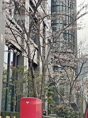 東京駅近くのオフィス街にも、桜がしっかりと咲いていた。