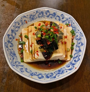 豆腐三昧 俺は肉も好きだが、豆腐も大好き。 中華料理の麻婆豆腐は、本当に辛いものから少し甘めのものまである。 今回トライしたのは、北京風の麻婆豆腐。 本当に辛かったが、美味しかった。 ご飯も2杯頂いた。 プラス辛めの中華風冷奴。 これまた辛くて美味い。 俺、辛い物、結構好きかも….
