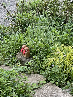 歩いていると見逃してしまいそうな石の上に、小さなお地蔵さん二体が乗っかっていた。