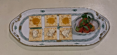 今日の前菜 今日は生憎の雨で、テニスが出来ず、つまらなかった。 線状降水帯、要りません! 夕食の前菜で気分を一新。 手作りの梅ジャムを頂き、オードブルとして食べたがメチャ美味しかった。 僕達が作っている梅ジュースは、1ヶ月後こんなに美味しくなるのかな?